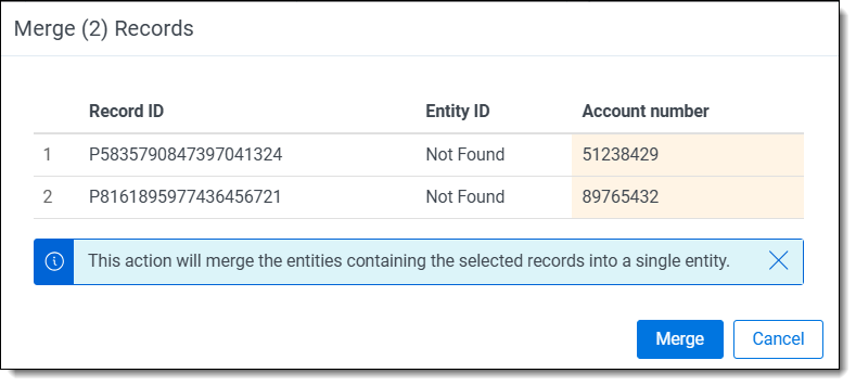 If the system makes an error during entity normalization, you can correct it by merging or unmerging a record from an entity. The system will remember your updated decisions.
