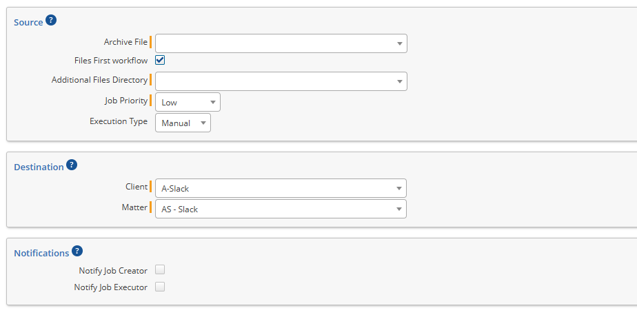 • Notify Job Creator—select this checkbox to notify the job creator by email when the job is started, paused, or canceled, or when the job completes successfully or fails in error.