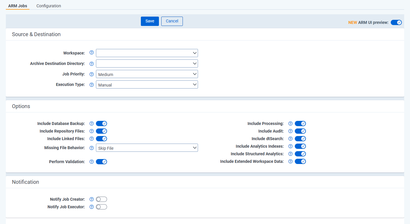 - Click the ARM Jobs tab on the page to navigate back to the ARM Jobs list and view the newly created Archive job.