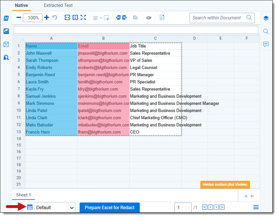 - Select the table icon on the bottom of the native spreadsheet viewer.