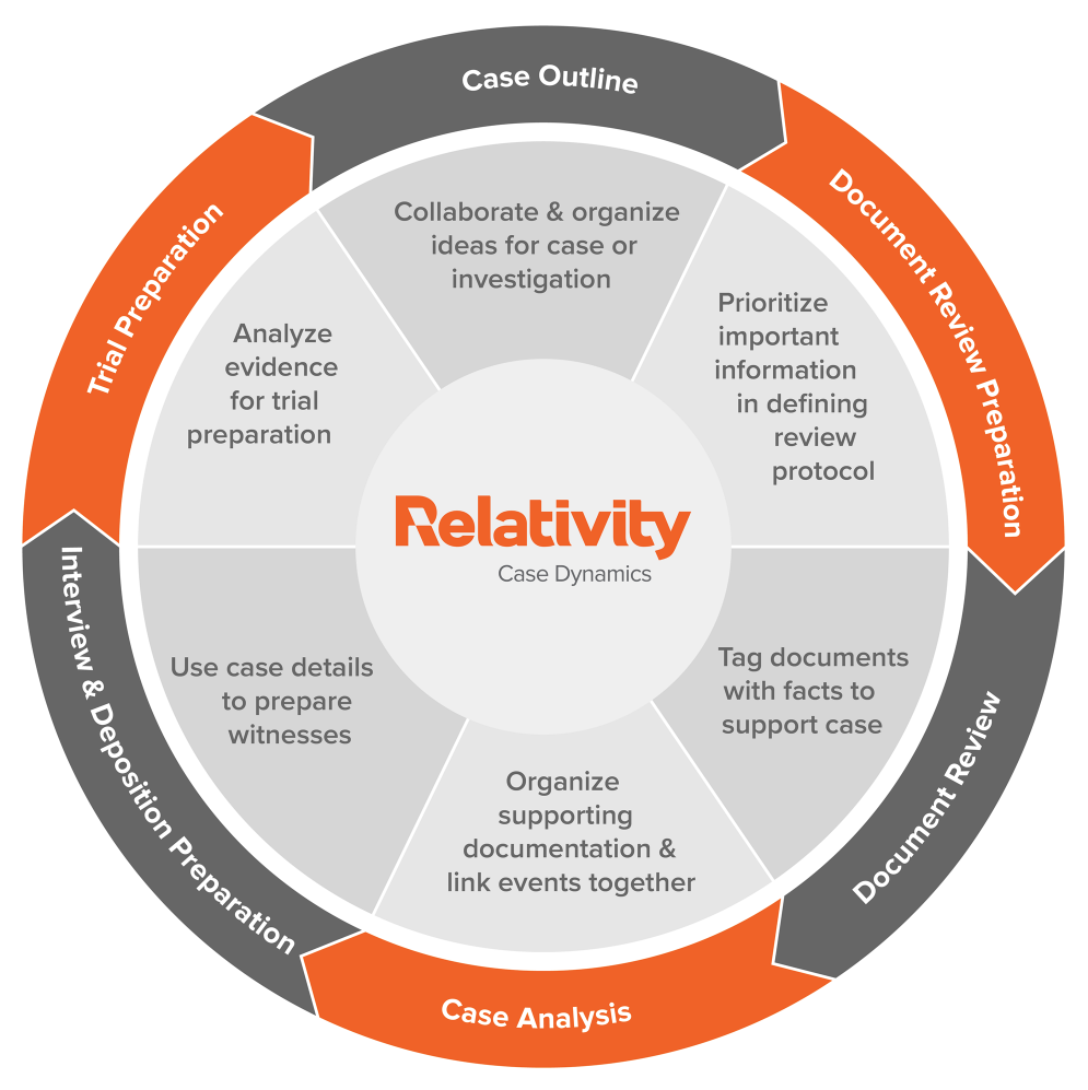 Case Dynamics correlates facts and issues in all stages of the case life cycle.