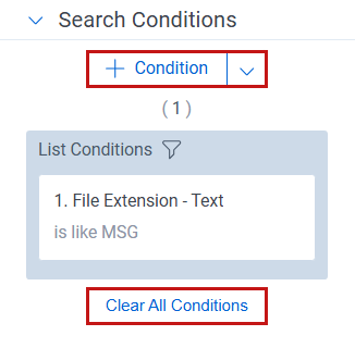 5. Search Conditions—after creating a saved filter, any conditions applied appear in the Search Condition pane. To change a filter condition, first clear the conditions, then add one or more new conditions.