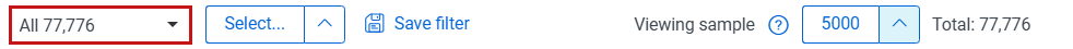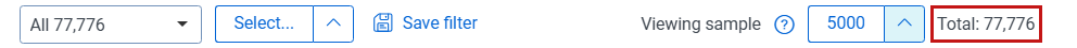 • The mass actions count displays the number of documents selected for a mass action. Mass actions apply to the full data set and not just the sample set.