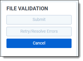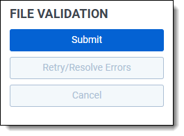 If errors occur after you submit a File Validation job, its status changes to Error. The Messages section displays the errors that occurred. To rerun the job, click Retry/Resolve Errors in the console.