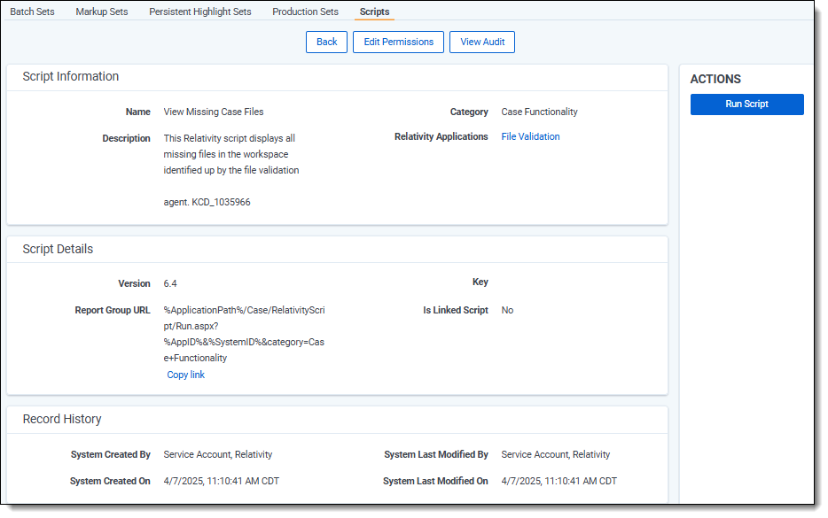 1. In a workspace, click the Case Admin > Scripts tabs.
