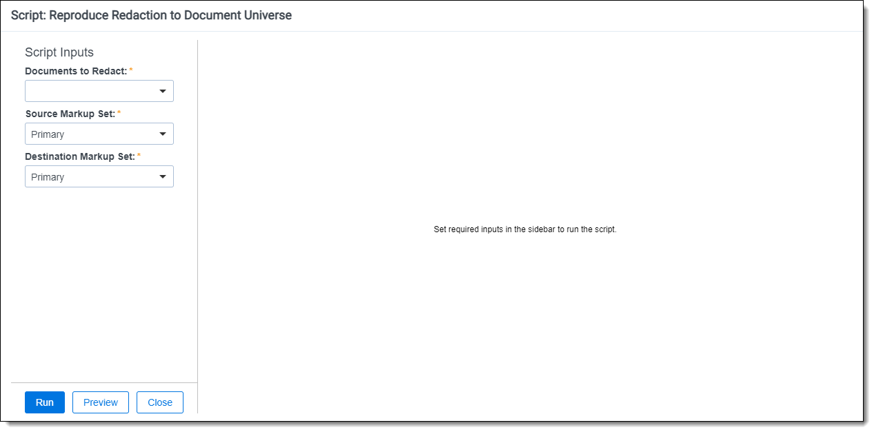 - Source Markup Set - Select the markup set which contains the redaction you would like to reproduce to the destination markup set.