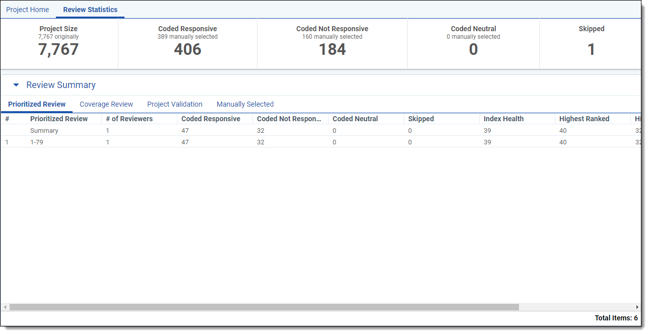 - Highest Ranked - the number of highly ranked documents reviewed in the Prioritized Review queue.