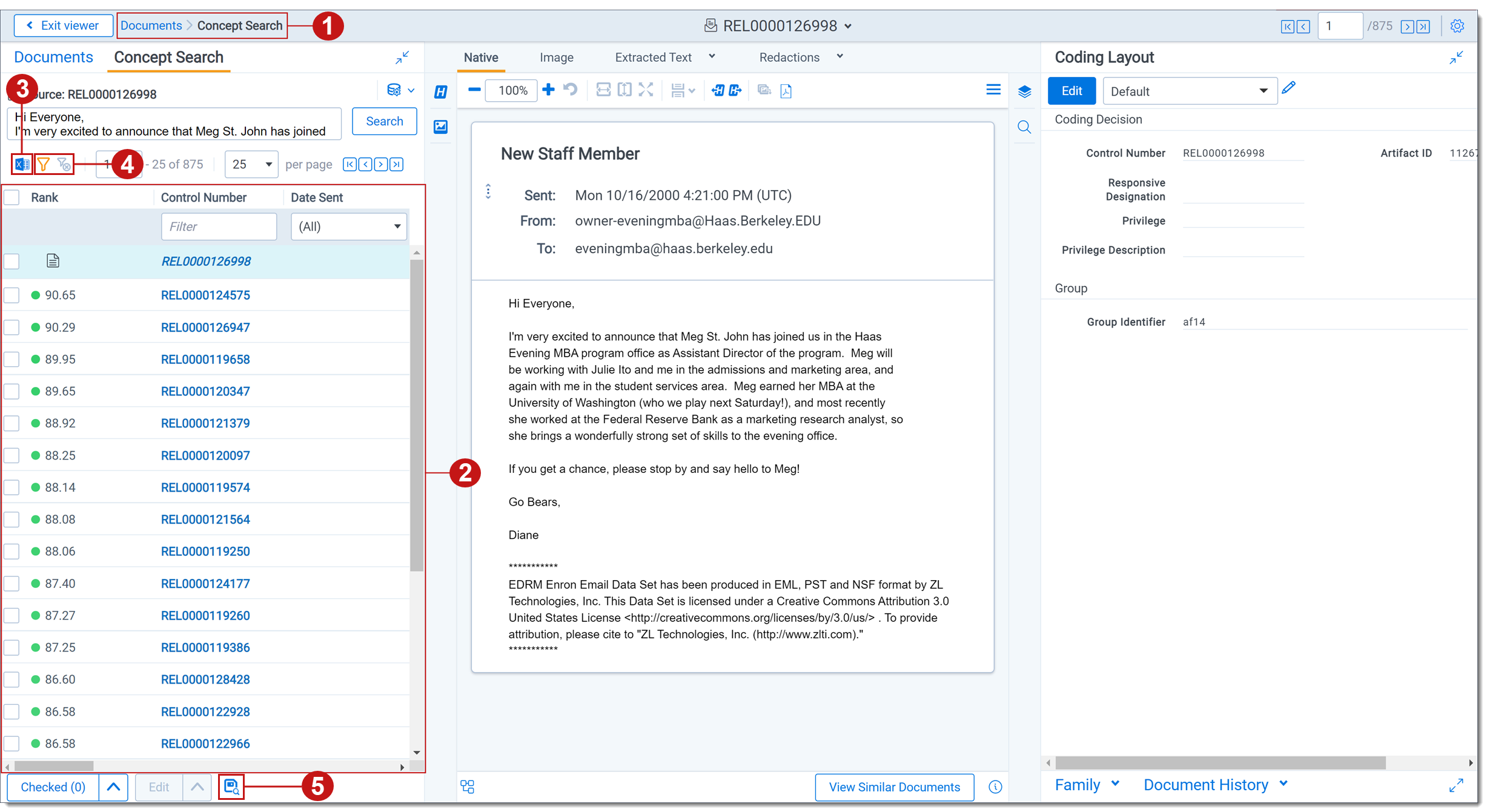 - Select a document from the document list, and then open it in the Native Viewer or Extracted Text Viewer. This is your primary document.