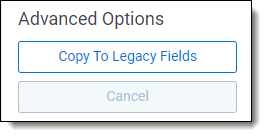 To run, click the Copy to Legacy Fields button. The progress is displayed in the status section. You can cancel the operation while it is running, but you cannot roll back the results, and the job will be left incomplete.