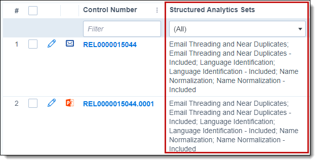 • The Structured Analytics Set includes either the email threading or textual near duplicate identification operations.