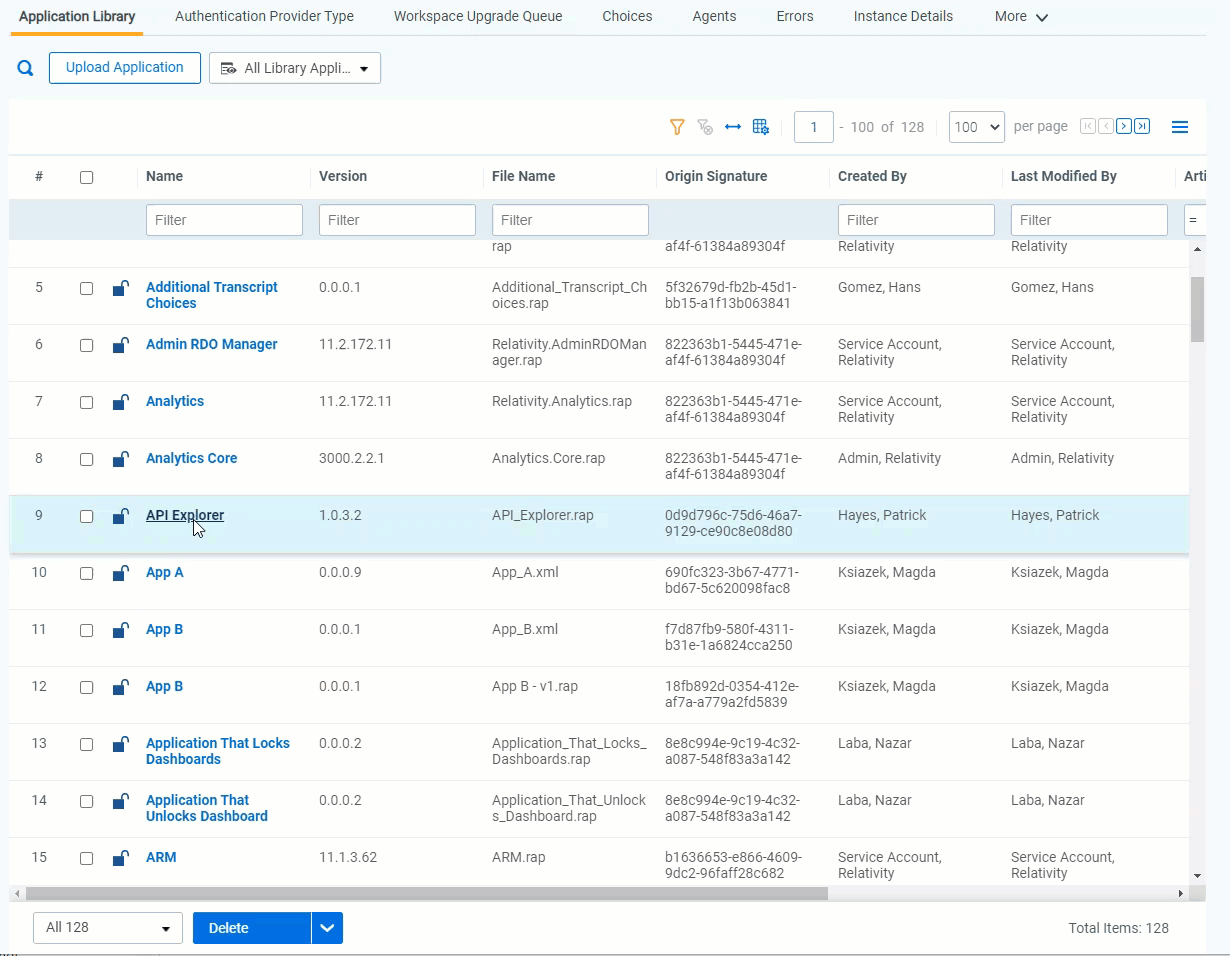 Once installation is complete, navigate to any of the workspaces you selected, select the Relativity Applications tab, and verify that the application was installed.
