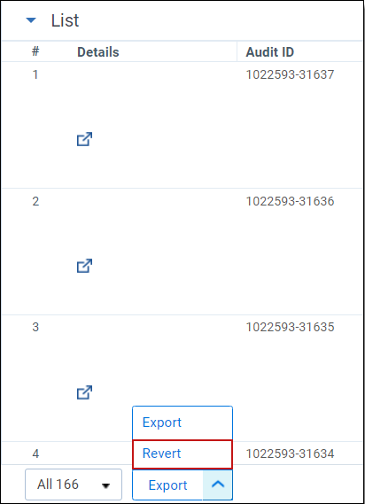 - In the items per page option, adjust the display up to the number you wish to revert (maximum 1000).