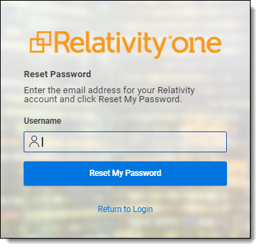 Use this procedure if you are logging in to Relativity for the first time or if you are resetting your password. Your system admin must send you a password reset email. If you forget your password, you can click the Forgot your password link on the login screen if it is available, or contact your