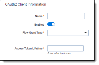 - Name—the descriptive name of the OAuth2 client. The name must be unique.