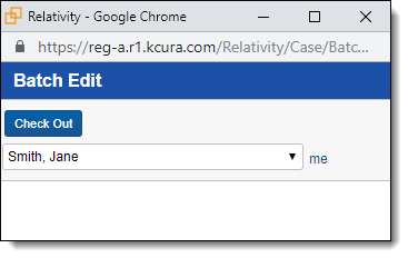 Depending on permissions, you might see a drop-down menu where you can select other users to assign batches to. If the drop-down menu is not available, you can only check out batches for yourself. You can't check out batches that another user has checked out.