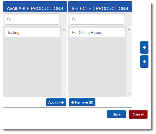 to select the desired production(s) in the workspace.- Click Add, then use the up or down arrows to set a production order precedence.