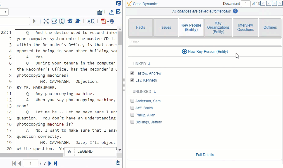 When reviewing documents in the Review Interface, you can link the active document to Case Dynamics objects, which store information related to your case. See Working with Case Dynamics objects.