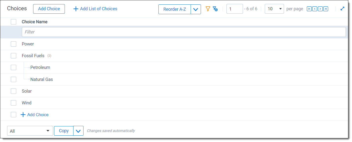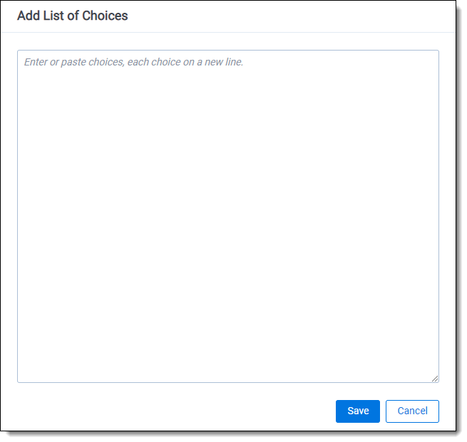 Using the Choice editor, you can add a single or multiple choices to a field.