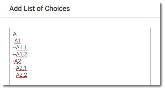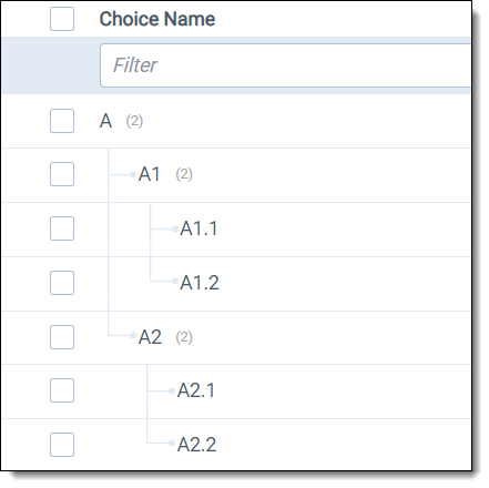 • Parent choice - when you create a sub-choice, you can select a parent choice under which the current choice appears. Be aware that once you set your family of choices and tagged values, editing a parent choice causes inconsistencies.