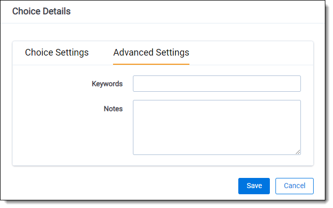 The Choice Details editor has two tabs: Choice Settings and Advanced Settings.