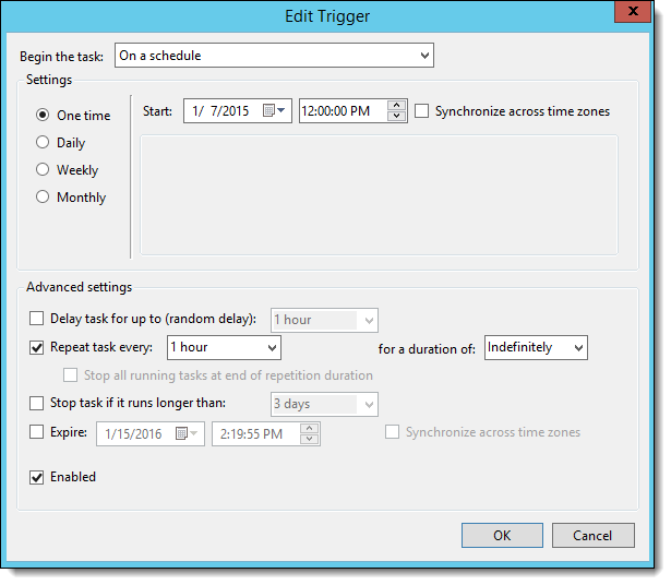 8. Verify that the Begin the Task field is set to On a schedule, and then set the start date to your preferred time.