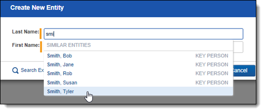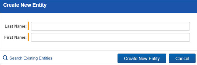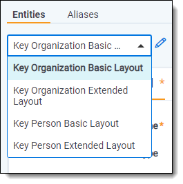 • If you're creating entities with Organization selected for the Type field, then the Full Name field must be included on the layout.