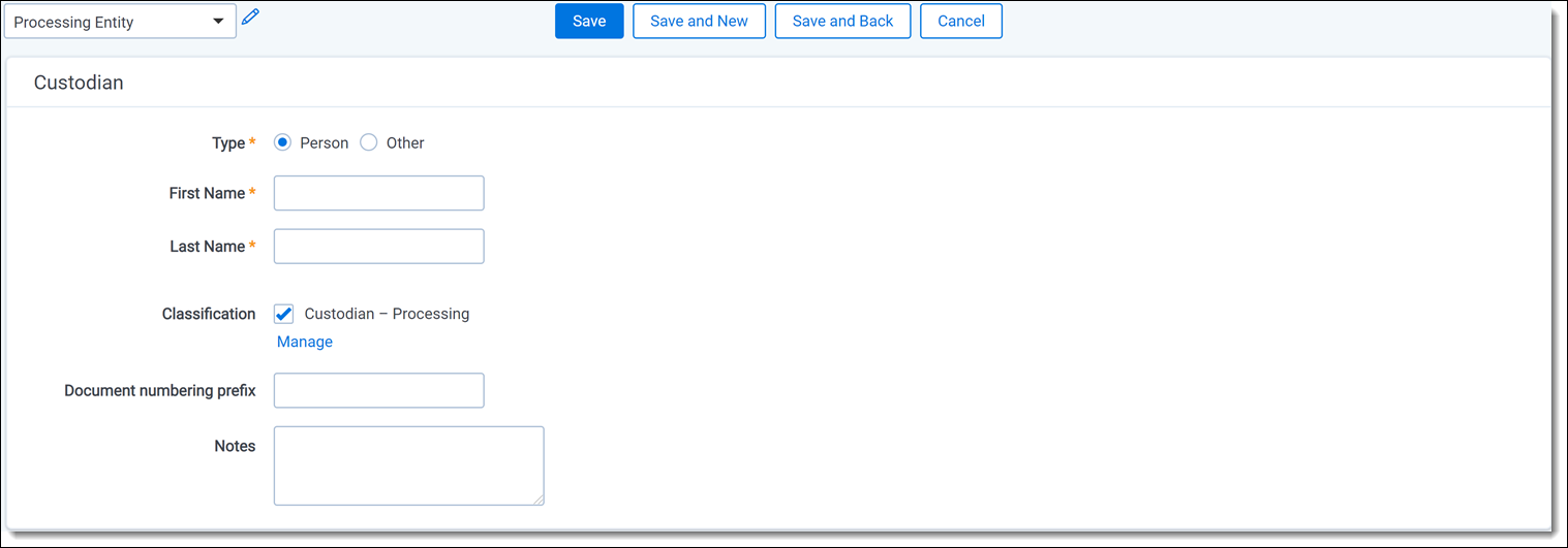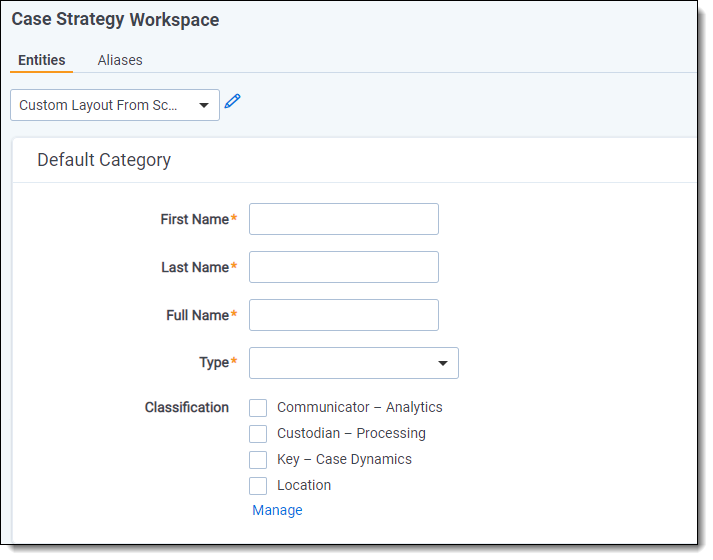 • The layout should include the Type field, as well as, the Classification fields. Both fields should be editable so that entities can be tagged properly.