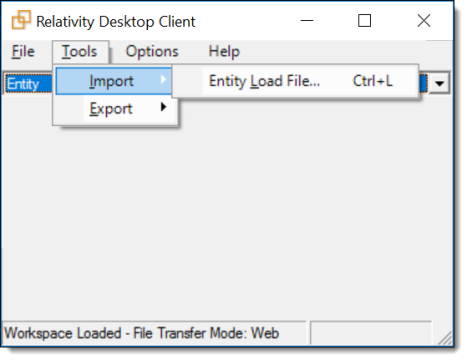 • Load entities via the Relativity Desktop Client. See Importing entities through the RDC.