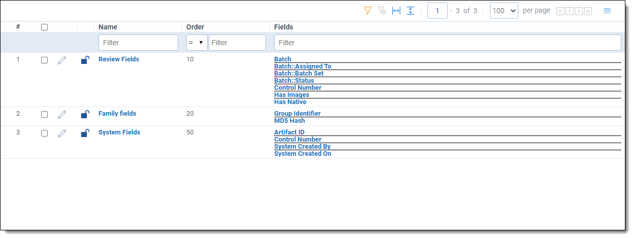 - Order - determines where the field category appears within the view drop-down list. Items that share the same value are sorted in alphanumeric order.