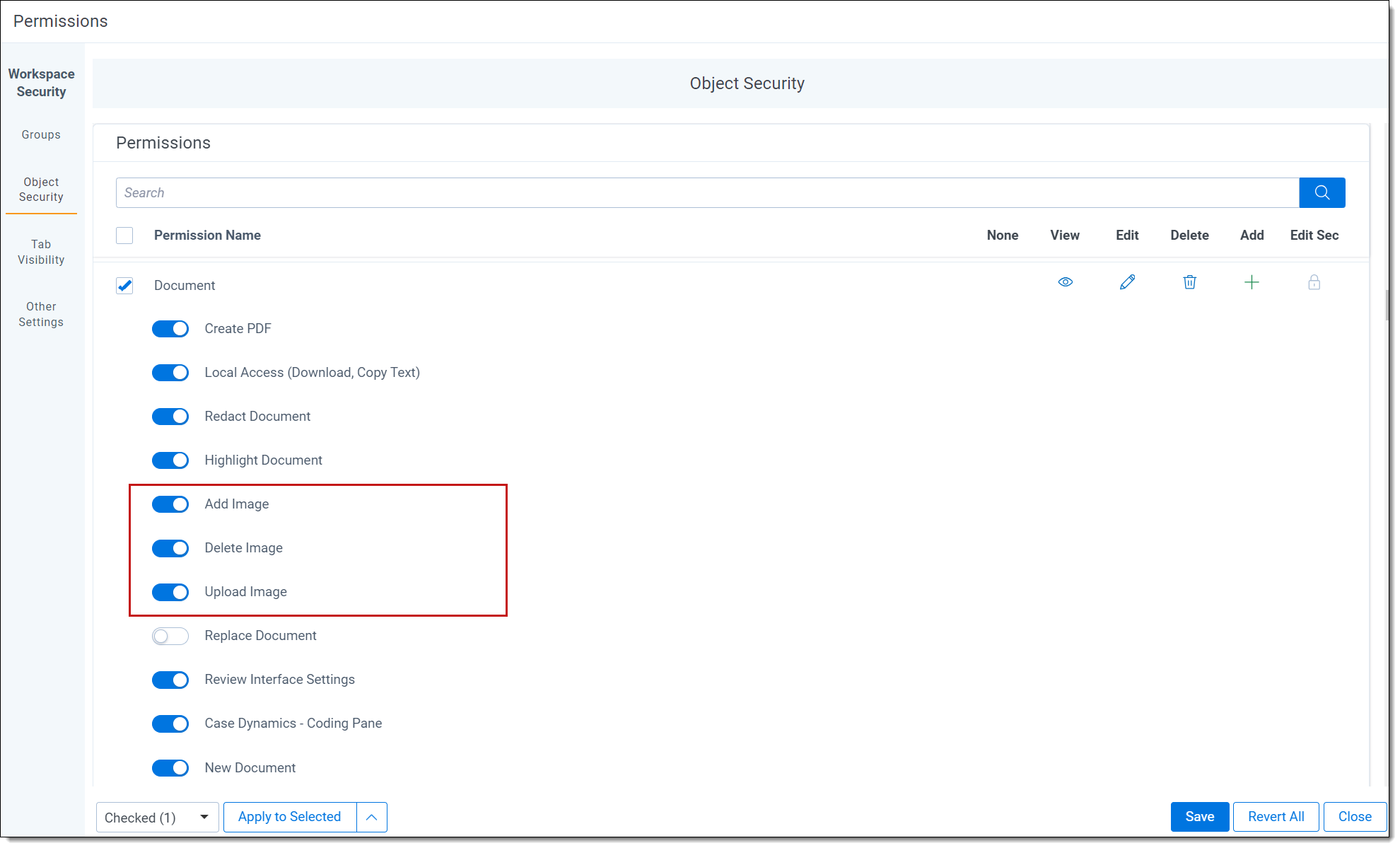 To use the image upload feature, you must have the following permissions enabled in the Object Security console:
