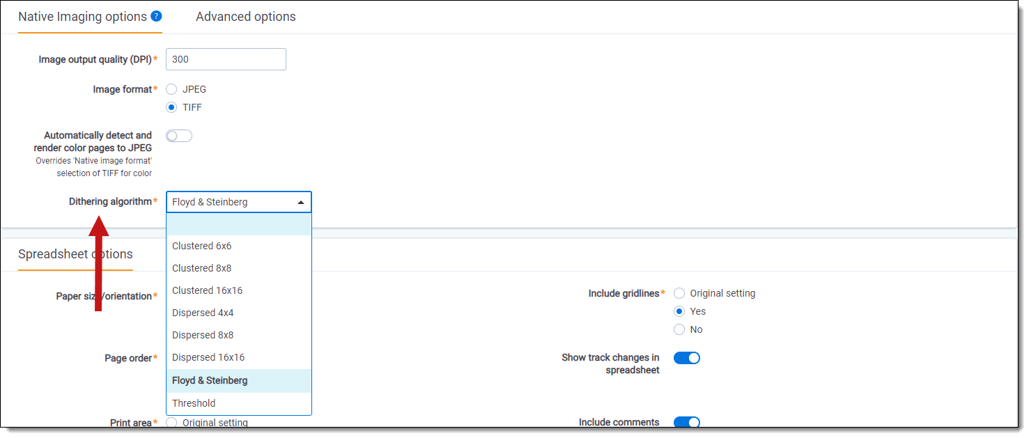 System admins can select from one of eight different dithering algorithms when they choose to image with native imaging: