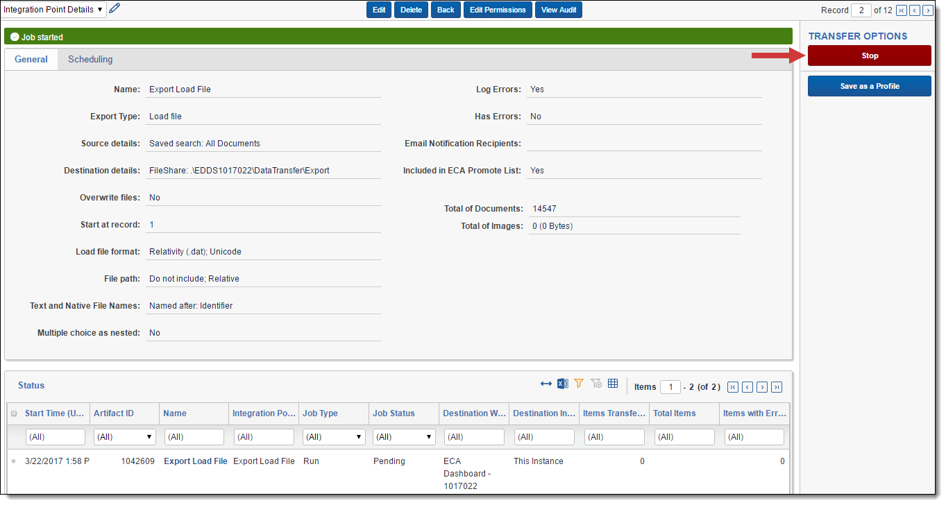 - You can also stop a scheduled job if it has a status of Pending or Processing.