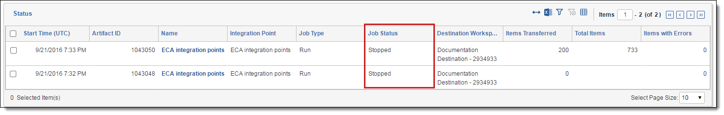- When you click Stop on a run-now job, Relativity marks all errors associated with the current job history as Expired.