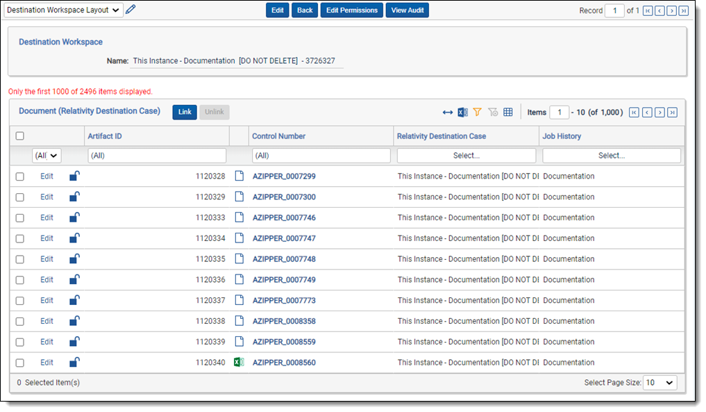 - Relativity Destination Case - a list of all the destination workspaces in which the document can be found.