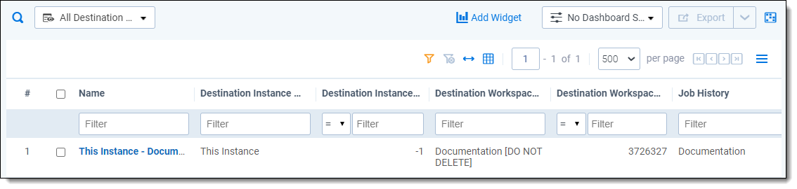 - Job History - a list of all the Job History entries associated with the destination workspace.