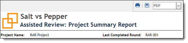 Project Summary—this provides a consolidated set of quality metrics from the entire project so that you can see the state of the project based on the last round completed. It includes manually coded documents, project categorization results, project overturn results, and control set statistics.