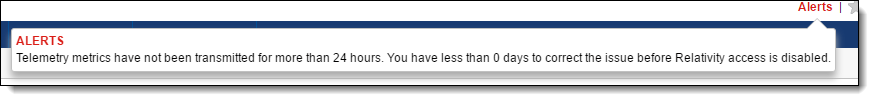 Failure to transmit telemetry billing data to Relativity causes Relativity access to be disabled after seven (7) days. Telemetry lockout is similar to Billing agent lockout. If your security setup doesn't allow access to public internet, contact Relativity support to configure offline-billing.