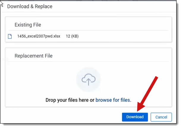 - The Download & Replace dialog box opens allowing you to browse for or drop a replacement file.