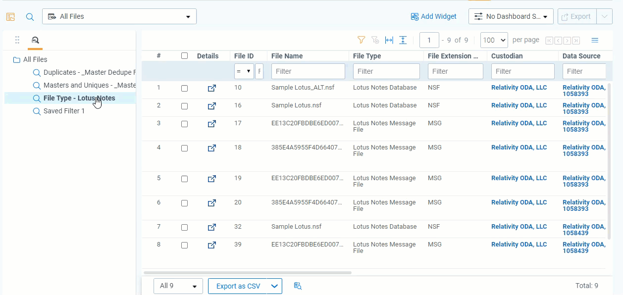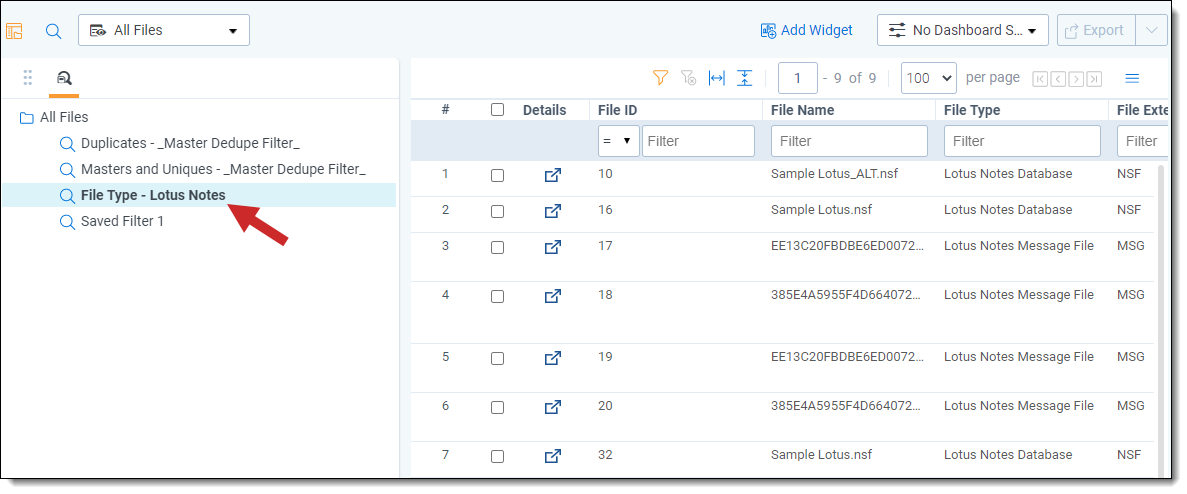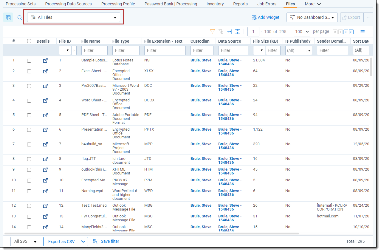The All Files view contains all the discovered files in your workspace. This view does not contain documents that have been deleted and have a Yes value for the Processing Deletion? field. Those documents can only be found in the Deleted Documents view described in the next section.
