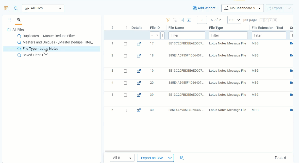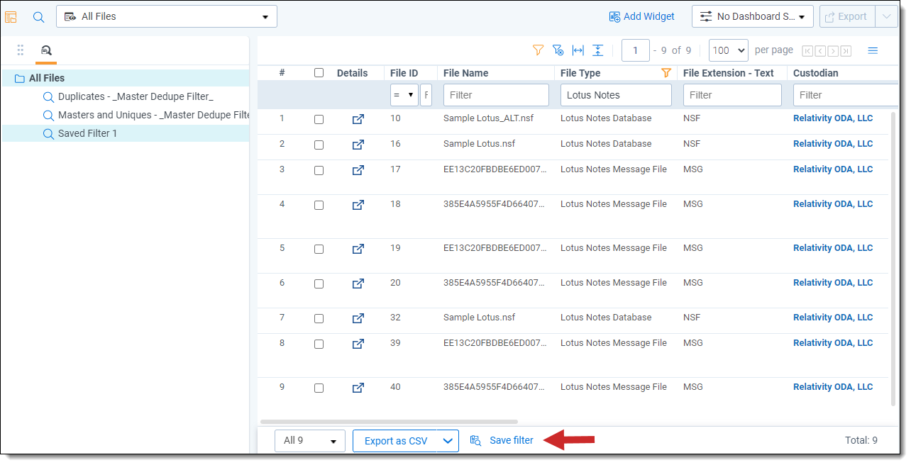 You can save any filters you set on any of the views in the Files tab and reuse them in future workflows. To do this: