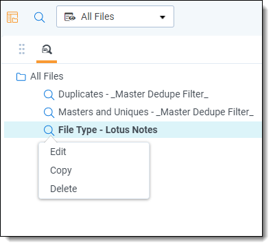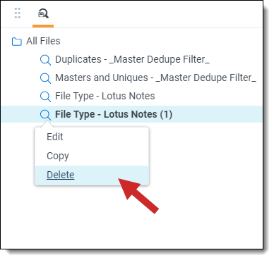 To remove a filter set from the saved filter browser entirely, right-click and select Delete .