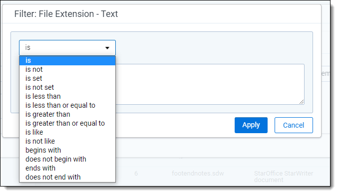 Once you select the additional fields you want to add to the saved filters set, specify the conditions you want to apply to those fields and click Apply.