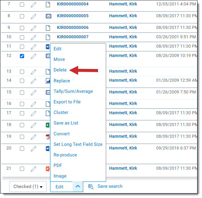 In addition, Processing updates deduplication. Specifically, once the modal closes and the mass delete operation is complete in review, Processing recalculates deduplication. At this point, the deleted files are removed, and any newly-designated primary documents are automatically published into review.