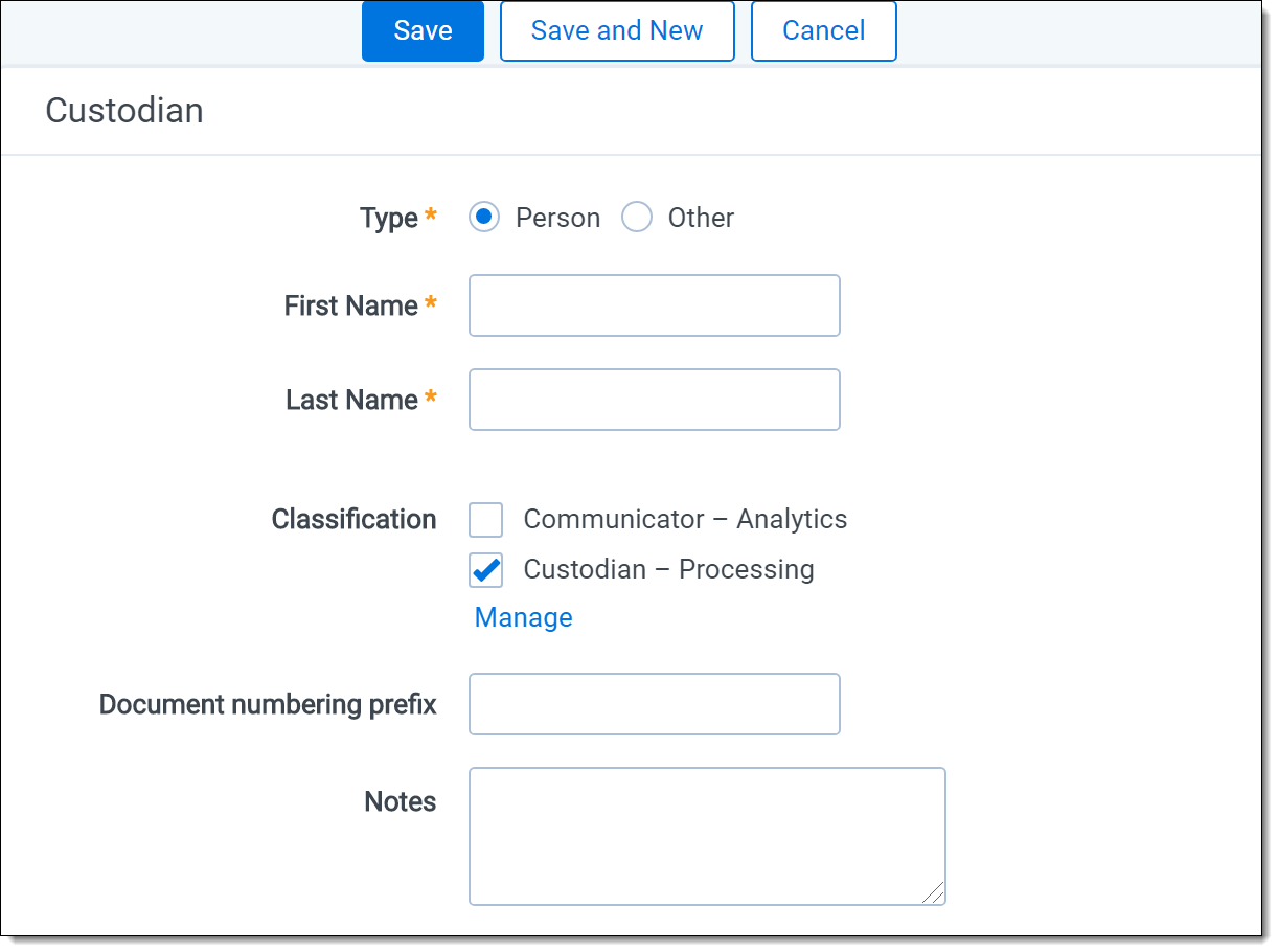 • Custodian—the custodian attached to the data source.
