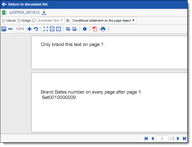 With Advanced Formatting, you can brand headers and footers with a combination of fields from the Advanced Formatting drop-down list, free-form text, and carriage returns. The Advanced Formatting option also supports a scripting language that you can use to create conditional branding based on production, document, and page fields.