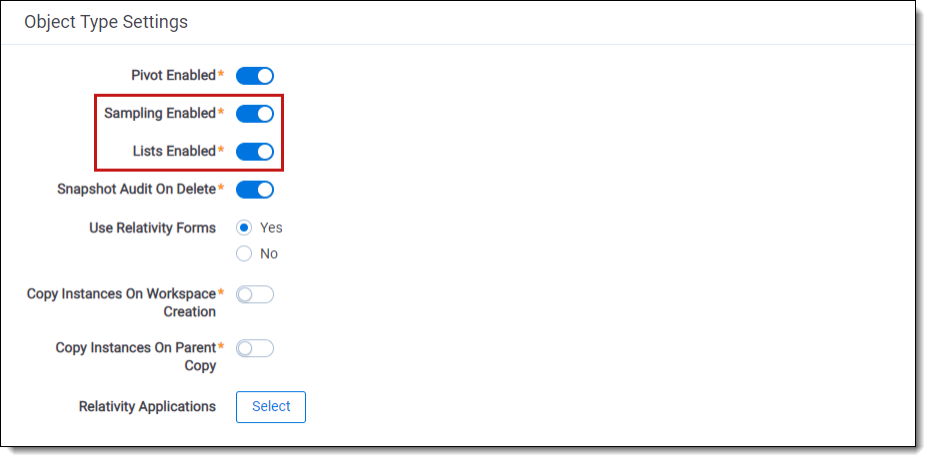 You can enable any object to use Relativity's sampling. By default, sampling is enabled on the Document object.