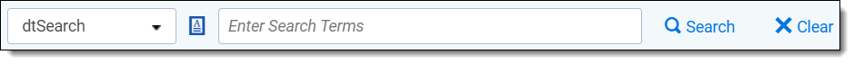 The Search Bar, a UI controlled feature, exists along the top of item lists that support index search. This replicates the functionality of the Index Search condition in the Search Panel (including Keyword Search and dtSearch). To run the index search, simply enter your search terms in the search bar and hit Enter on your keyboard or click Search.If you would like to list more than one search term on separate lines, click Enter + Shift.