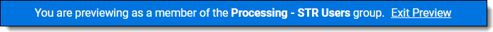 The workspace opens with the group permissions applied. This view is helpful if you want to see how the workspace looks and functions as a group member. A banner across the top of the page reminds you of the preview mode.
