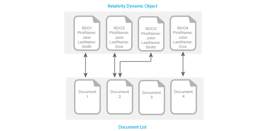 The image below shows documents associated with Relativity Dynamic Objects (RDOs).