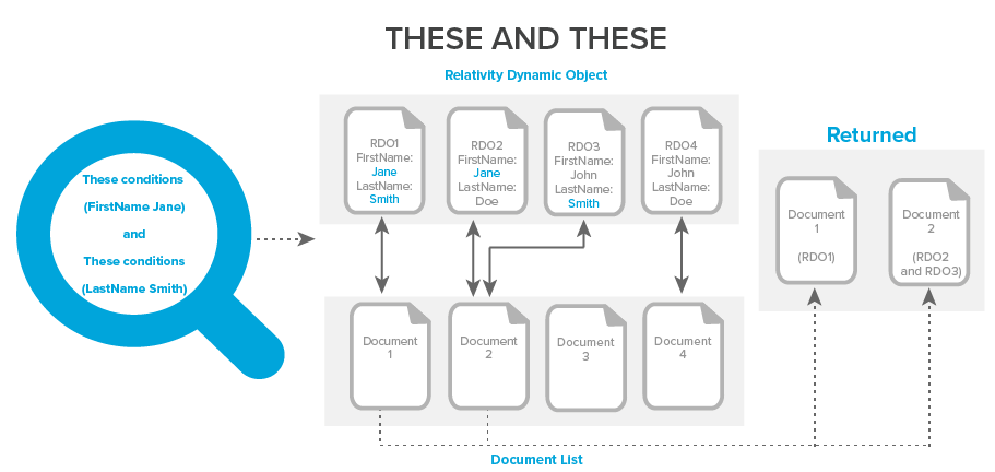 - Although RDO2 contains (FirstName Jane), RDO3 doesn't (FirstName John). Remember, if one RDO does not meet the criteria, the document is returned.